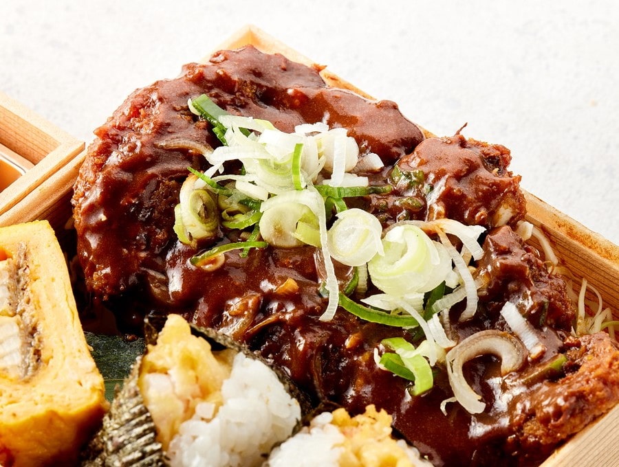 名古屋めし集結!味噌カツにうまき、さらに天むすと名古屋コーチンプリンが入った贅沢なお弁当で、県外からのお客様のおもてなしにもぴったりです。